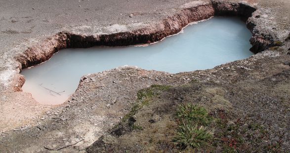 volcanic features including: geysers, hot pots (boiling pots of mud),
